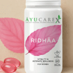 RIDHĀA is an Ayurvedic softgel capsule crafted for women, designed to gently restore vitality, enhance natural desire, and support intimate well-being.